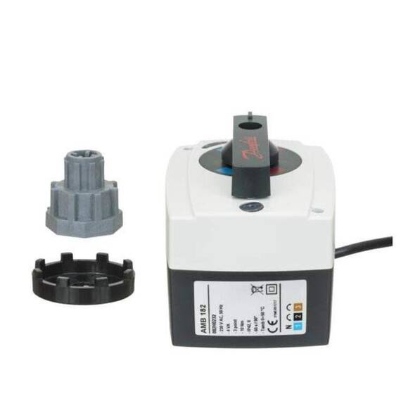 Ротационные приводы Danfoss серии AMB 182 предназначены для автоматического управления трехходовыми, четырехходовыми поворотными клапанами и шаровыми кранами. Они используются в смесительных узлах и позволяют регулировать температуру теплоносителя в автоматическом режиме, получая управляющие сигналы от контроллера, который управляет всей системой отопления. Данные приводы имеют импульсное (2-х, 3-х точечное) или пропорциональное управление (управляющий сигнал 0-10/2-10В, 0-20/4-20 мА) питание 230В или 24 В. Угол вращения данных приводов составляет 90°, время поворота 15-480 сек., крутящий момент-5, 10 и 15 Нм.
