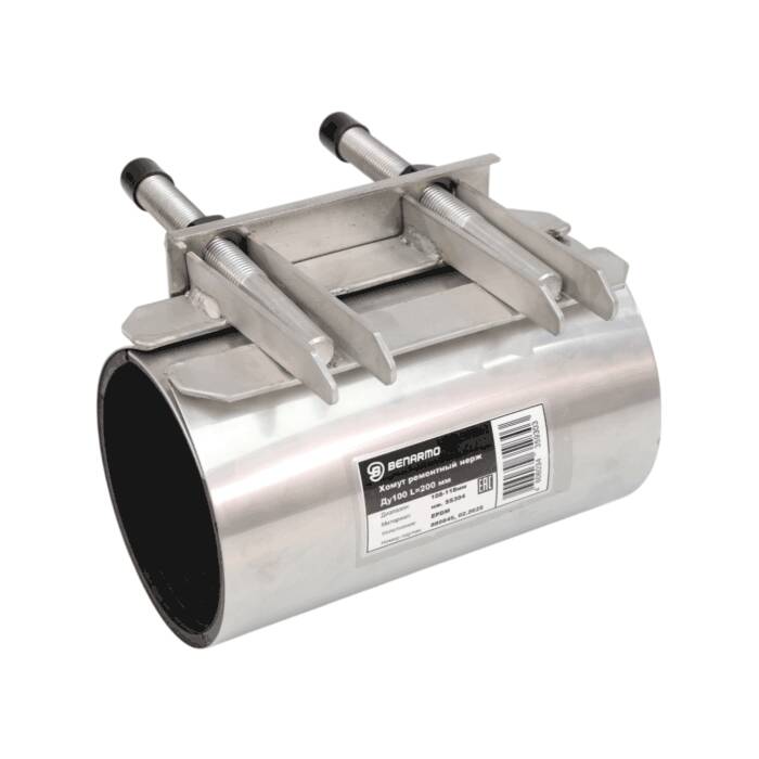 Тип: ремонтный; Вид крепления: односторонний; Наличие замка: с нержавеющим замком; Материал: сталь нерж; Диаметр: Ду 100; Диаметр min: Дн 108; Диаметр max: -118; Длина max: L=300мм; Бренд: Benarmo; Серия: 7061;