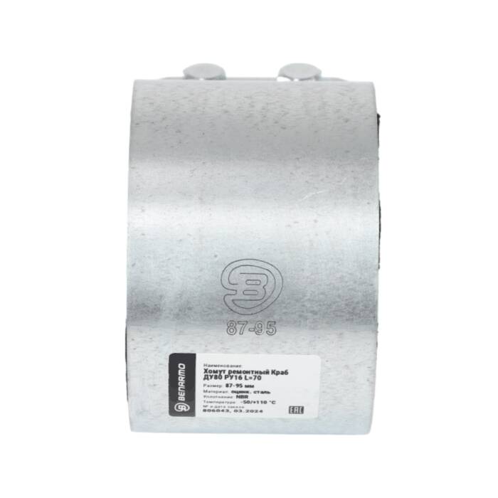 Тип: ремонтный; Вид крепления: односторонний; Материал: сталь; Покрытие: оц; Диаметр: Ду 100; Диаметр min: Дн 114; Диаметр max: -121; Длина max: L=150мм; Модель: Краб; Бренд: Benarmo; Серия: 7070;