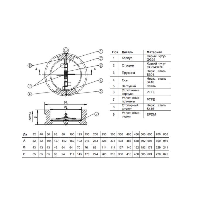 Тип: обратный; Материал: чугун; Тип устройства: 2/створ; Модель: 3050; Диаметр: Ду 40; Максимальное рабочее давление: Ру16; Максимальная температура: Тмакс=120 оС; Тип присоединения: межфл; Затворный орган: створки; Материал затвора: чугун; Уплотнение затворного органа: +EPDM; Бренд: Benarmo;