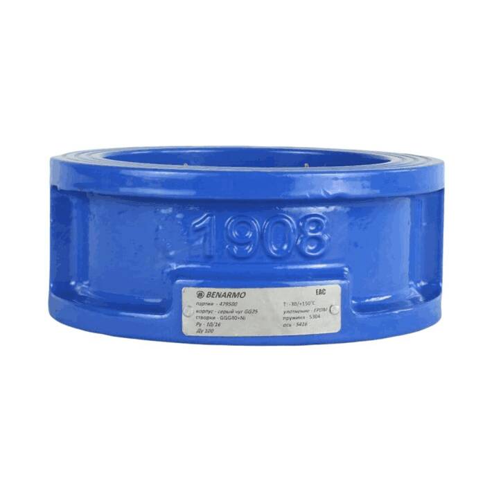 Тип: обратный; Материал: чугун; Тип устройства: 2/створ; Модель: 3050; Диаметр: Ду 600; Максимальное рабочее давление: Ру16; Максимальная температура: Тмакс=120 оС; Тип присоединения: межфл; Затворный орган: створки; Материал затвора: чугун; Уплотнение затворного органа: +EPDM; Бренд: Benarmo;