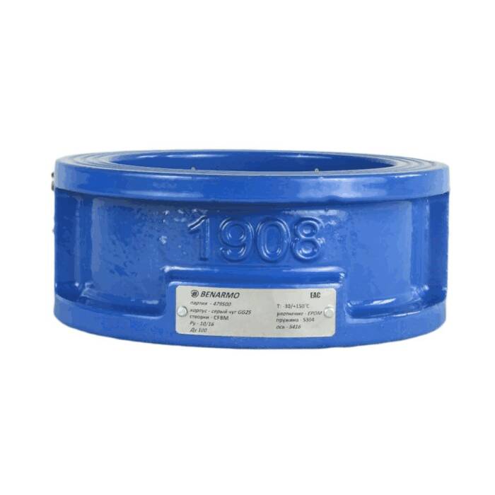 Тип: обратный; Материал: чугун; Тип устройства: 2/створ; Модель: 3051; Диаметр: Ду 600; Максимальное рабочее давление: Ру16; Максимальная температура: Тмакс=120 оС; Тип присоединения: межфл; Затворный орган: створки; Материал затвора: нерж; Уплотнение затворного органа: +EPDM; Бренд: Benarmo;