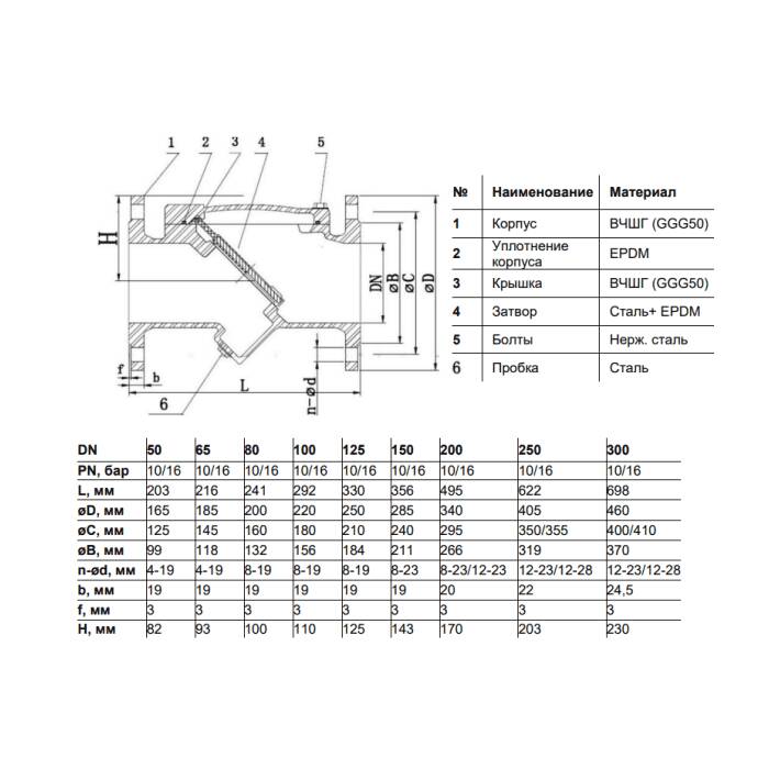 Клапан обр чуг пов 3040 Ду300 Ру10/16 фл д/ст+EPDM Benarmo