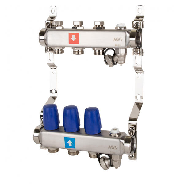 Коллектор без расходомеров, c дренажным краном и краном Маевского 1" х 3/4"ЕК 3 вых. MS.603.06