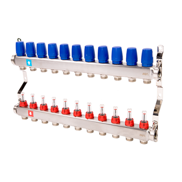 Коллектор из нержавеющей стали в сборе с расходомерами. 1" х 3/4"ЕК 11 вых. MS.511.06