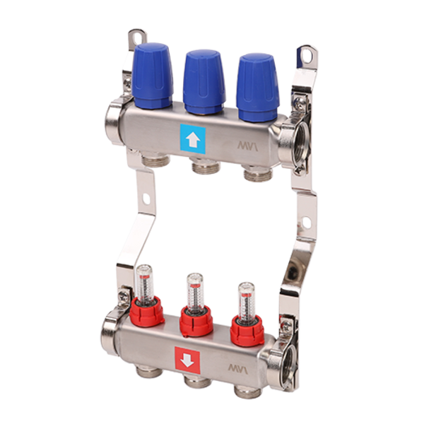 Коллектор из нержавеющей стали в сборе с расходомерами. 1" х 3/4"ЕК 3 вых. MS.503.06