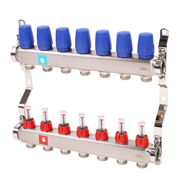 Коллектор из нержавеющей стали в сборе с расходомерами. 1" х 3/4"ЕК 7 вых. MS.507.06