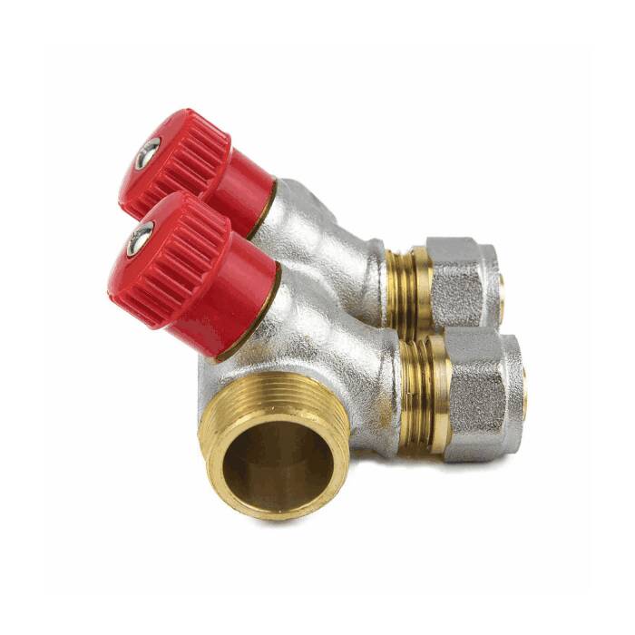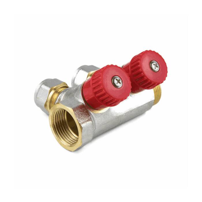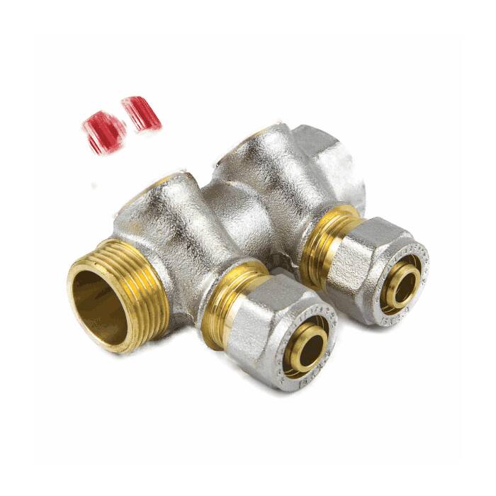 Коллектор лат клап рег красн 3/4" м/р 2в Дн16 обжим мп 35мм Aquasfera 7018-01 .