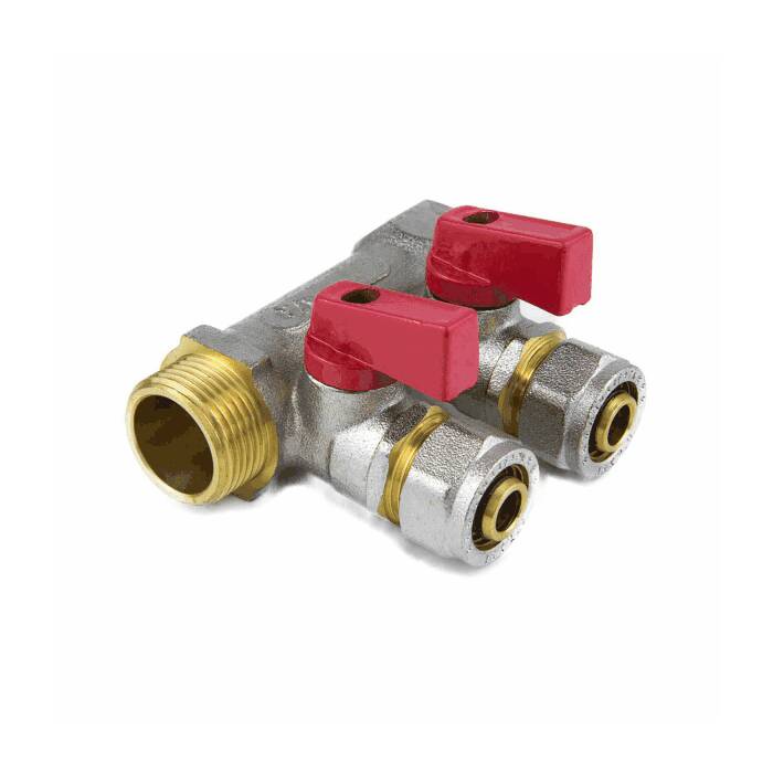 Коллектор лат шар/к красн 3/4" м/р 4в Дн16 обжим мп 35мм Aquasfera 7016-03 .