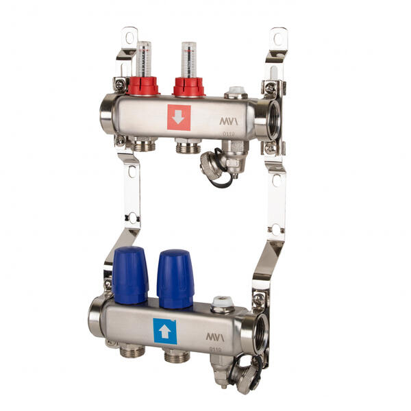 Коллектор с расходомерами, дренажным краном и краном Маевского 1" х 3/4"ЕК 2 вых. MS.702.06
