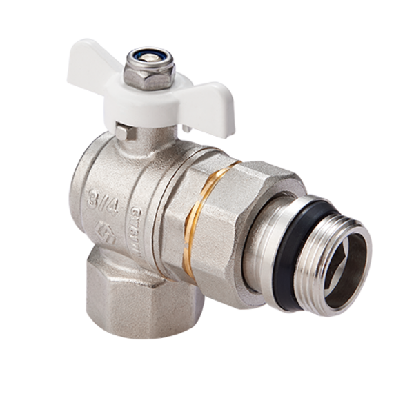 Кран-американка латунный угловой с полусгоном и самоуплотняющимся кольцом 1/2" PN 40 BV.523.04