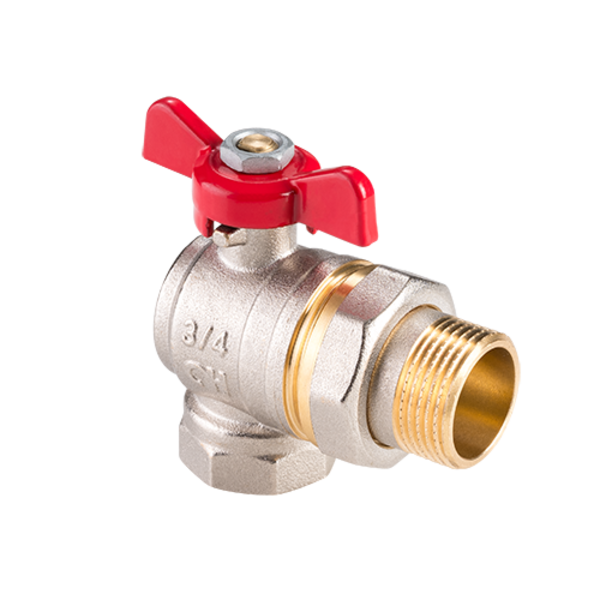 Кран шаровый полнопроходной угловой с полусгоном AquaHit в-н, бабочка 1/2" PN 25 BV.322.04