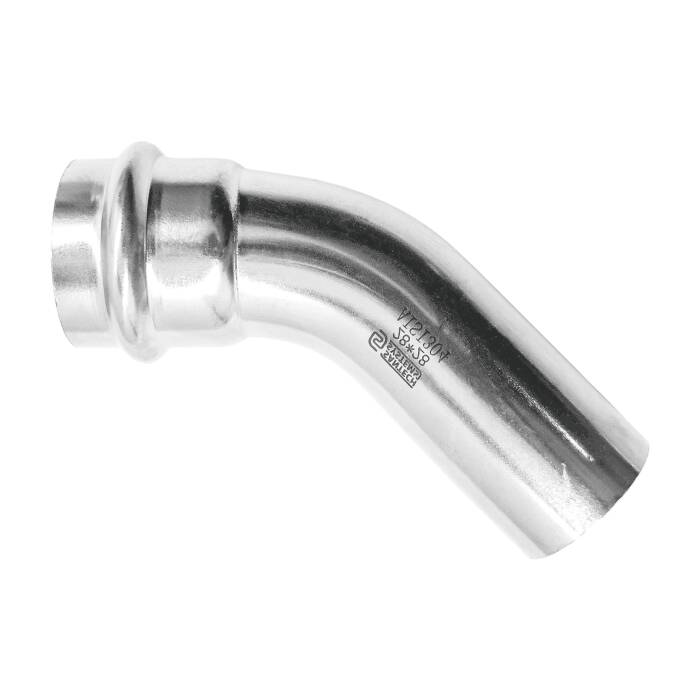 Материал: сталь нерж; Марка материала: AISI 304; Угол (в градусах): 45гр; Диаметр наружный, мм: Дн 22; Тип присоединения: пресс/труба; Модель: FS102; Бренд: SantechSystems;