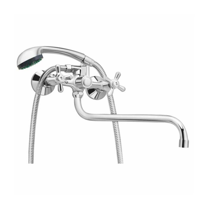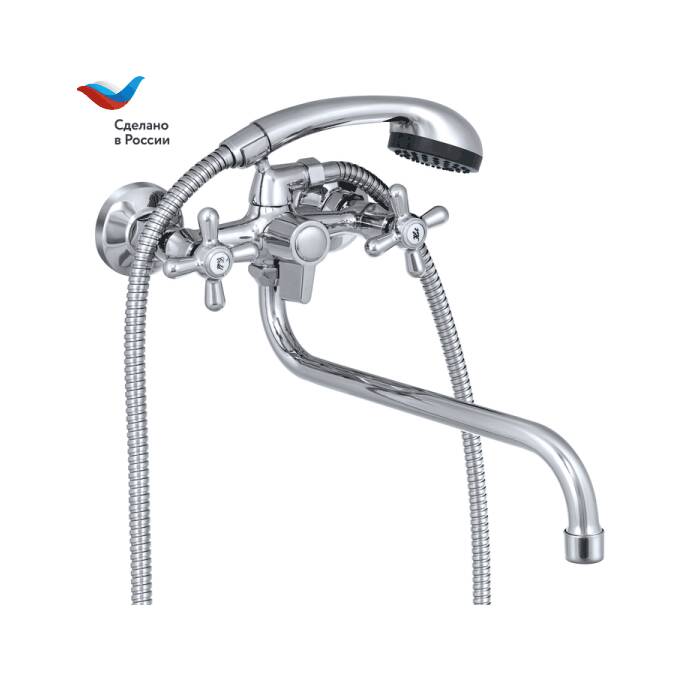 Назначение: для ванны с душем; Тип смесителя: двуручный; Цвет: хром; Серия: Прораб; Модель маховика/ручки: О-серия; Бренд: Славен; Артикул: СЛ-ДВ-О31; Комплект поставки:корпус смесителя, излив в сборе с аэратором, шланг для душа, лейка для душа, держатель для лейки настенный, крепежный комплект смесителя к стене (эксцентрики - 2 шт., отражатели - 2 шт., уплотнительные прокладки - 2 шт.), упаковка, паспорт;