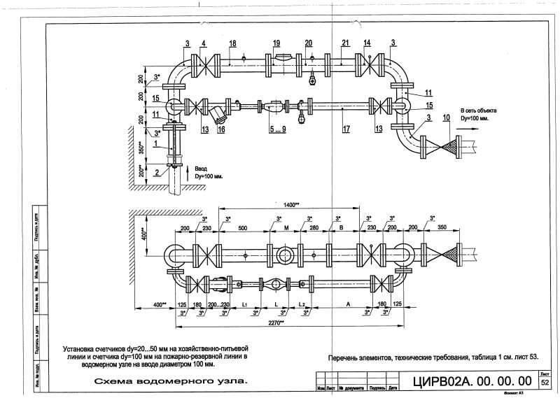 Водомерный узел II-100.сч.50 И (сч.100 И) ЦИРВ 02А.00.00.00. (л.52,53)
