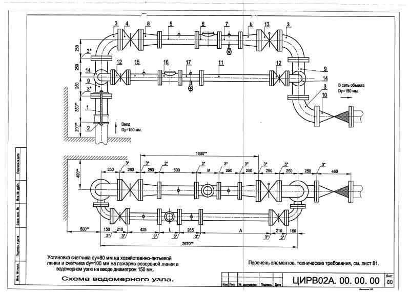 Водомерный узел II-150.сч.80 И (сч.100 И) ЦИРВ 02А.00.00.00. (л.80,81)