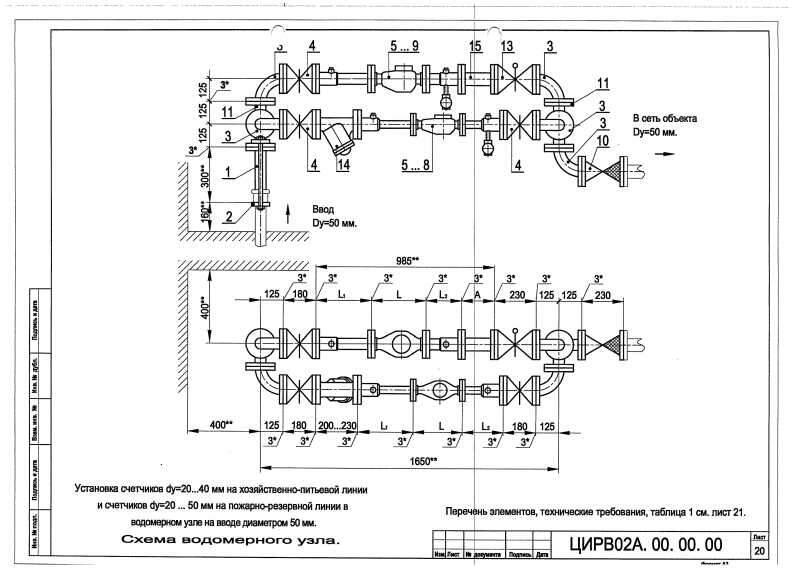 Водомерный узел II-50.сч.20 И (сч.32 И) ЦИРВ 02А.00.00.00. (л.20,21)